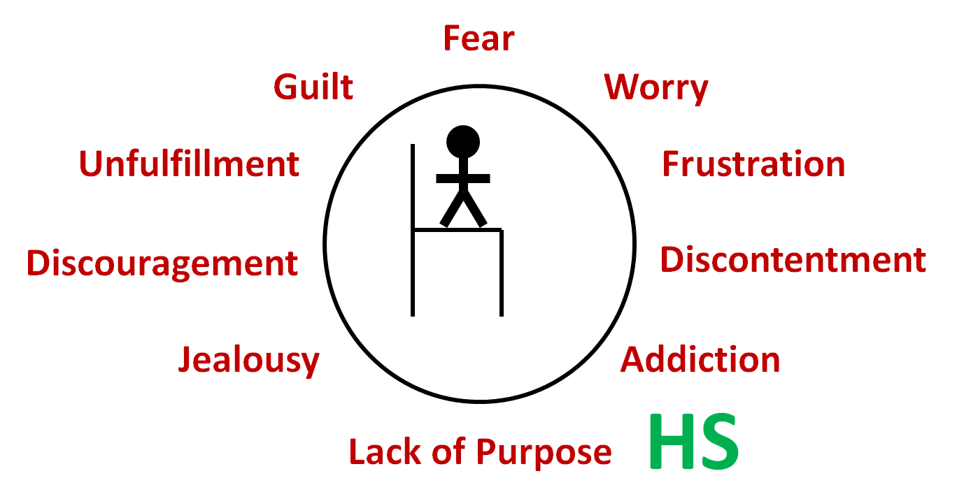Here we find a person who has placed their faith in Jesus. Their life is no longer their own. They now belong to God. The Holy Spirit (H.S.) has come into their life and is on the throne (or driver’s seat). He is giving them the motivation and power to live like Jesus. They still stuggle with sin, but they are no longer dominated by it.